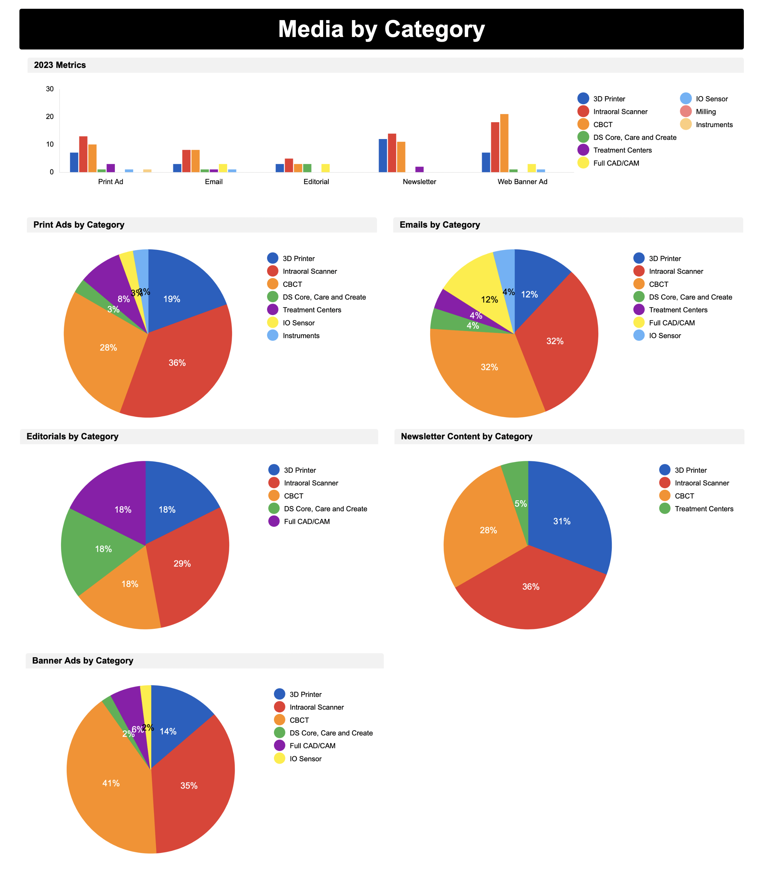 Managing media budget in terms of share of voice, share of resources and share of financial spend is managed using sophisticated a marketing dashboard that updates in real-time to ensure activities align with company priorities.
